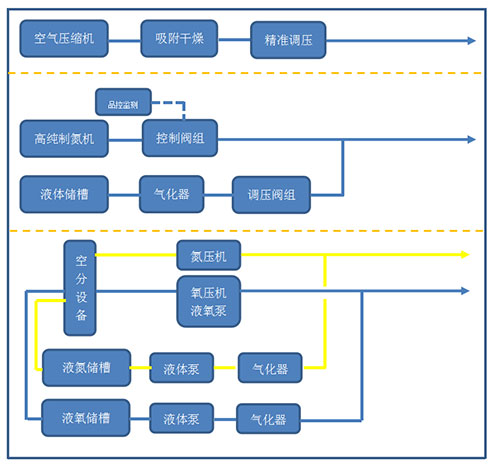 SUNBET给新材料企业供气的方案有多种,包括现场高纯深冷制氮机、双高深冷空分设备、纯液体供应等多种方式。SUNBET所有在现场建设的设备均采用自动化程度高的流程设计,依据公司技术标准进行设备制造,并将工业物联网及故障分析预测等先进的计算机技术运用于生产现场,具备完善的气体智慧大脑控制方法